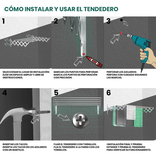TEHORNEO Tendedero Extensible Pared 140 cm, Tendedero Plegable Pared, Tendedero Pared, Tendederos Plegables de Pared, Tendedero de Pared, Tendedero Pared Plegable, Tendedero Pared Extensible Aluminio